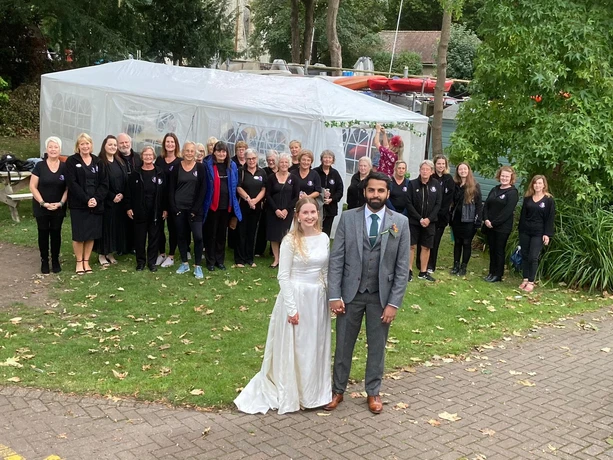 We were privileged to be invited to sing at Katie (a choir member) and Atif's wedding reception at Portchester Sailing Club. Katie had chosen "I Can't Help Falling in Love with You". The fact that there were only 20 or so of us didn't hinder us from doing justice to that beautiful song.